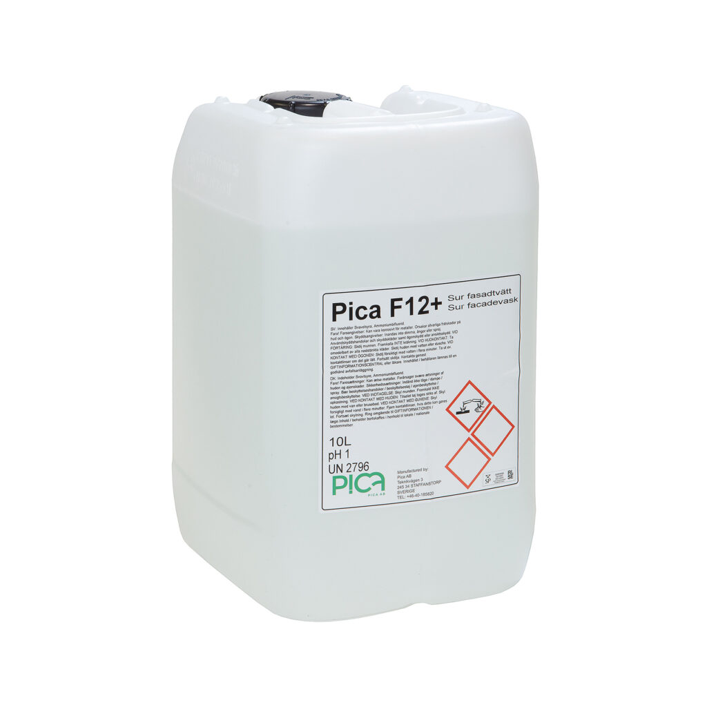 Att hålla sina fasader rena och fria från smuts, trafikfilm och annan kontaminering är en investering för framtiden. Smutsiga fasader och tak ser inte bara illa ut, det är även skadligt för fasaden. När en fasadtvätt skall utföras är det viktigt att man man använder rätt fasadtvättmedel. Vi på Pica AB erbjuder miljövänliga och effektiva produkter till fasadtvätt och fasadrengöring som löser upp smuts och trafikfilm och ger en fullgod fasadrengöring. Efter att en tak-, eller fasadrengöring utförts rekommenderar vi starkt att man även impregnerar underlaget. Våra produkter till tegelimpregnering och betongimpregnering gör att man slipper genomföra en fasadtvätt, algtvätt eller en mögeltvätt på många år framöver. Läs mer om våra olika produkter till fasadtvätt och fasadrengöring nedan och hitta den fasadtvätt och fasadrengöring som passar er bäst.
